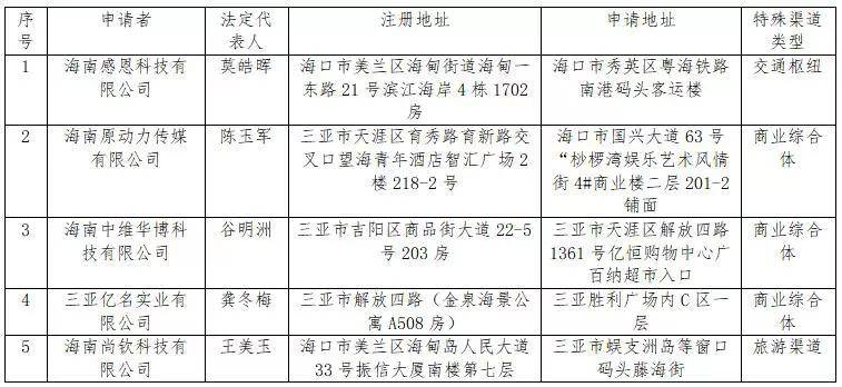 《公告》列出了获批的5家公司,渠道类型包括:1个交通枢纽、3个商业综合体和1个旅游渠道。