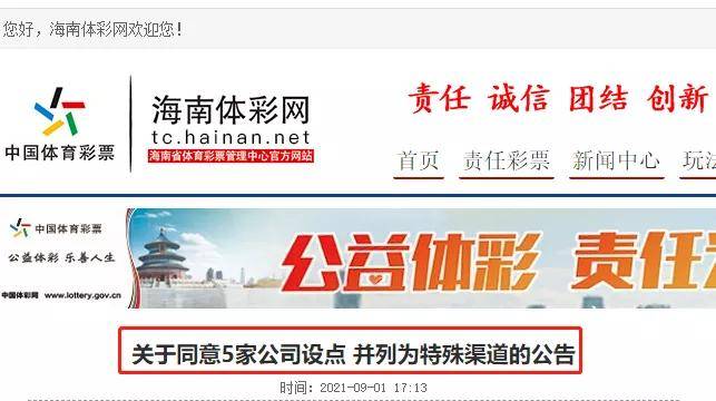 较早前,7月30日,海南体彩发布了《2021年体育彩票特殊渠道邀约公告》,计划在海口、三亚两个市县邀约设立5个特殊渠道。