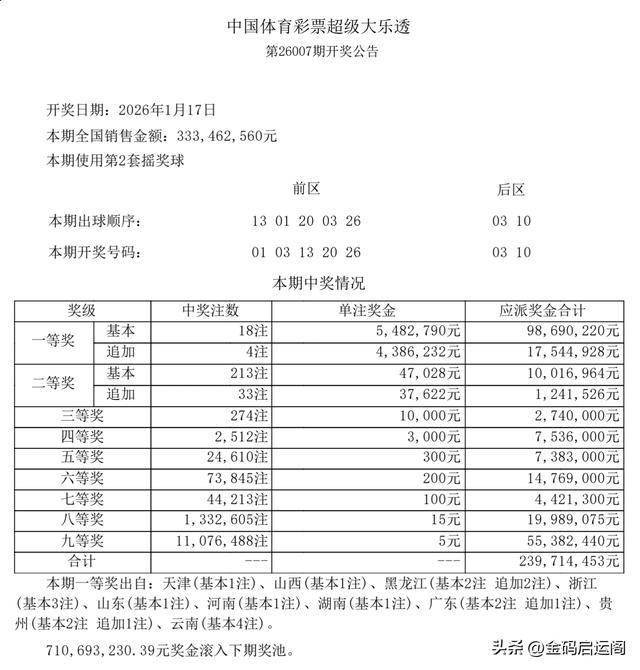 2026-01-19百家乐,百家乐官方网站,百家乐APP下载,百家乐游戏平台,百家乐网址,百家乐试玩,百家乐的玩法,百家乐技巧,百家乐公式,百家乐打法,百家乐电子,21点,德州扑克,快三,pk10,时时彩,北京赛车大乐透第26007期开奖。本期开奖号码为:前区 01、03、13、20、26,后区 03、10。全国共中出 18注