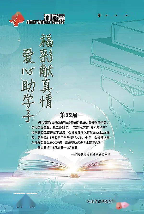 截至2022年,“福彩献真情,爱心助学子”活动已经连续举办了21届。河北福彩共投入2.6亿元彩票公益金,资助了6.8万多名困难家庭学生圆梦大学。如今,“福彩献真情,爱心助学子”活动已经成为助力河北省改善民生、促进社会和谐的公益品牌。