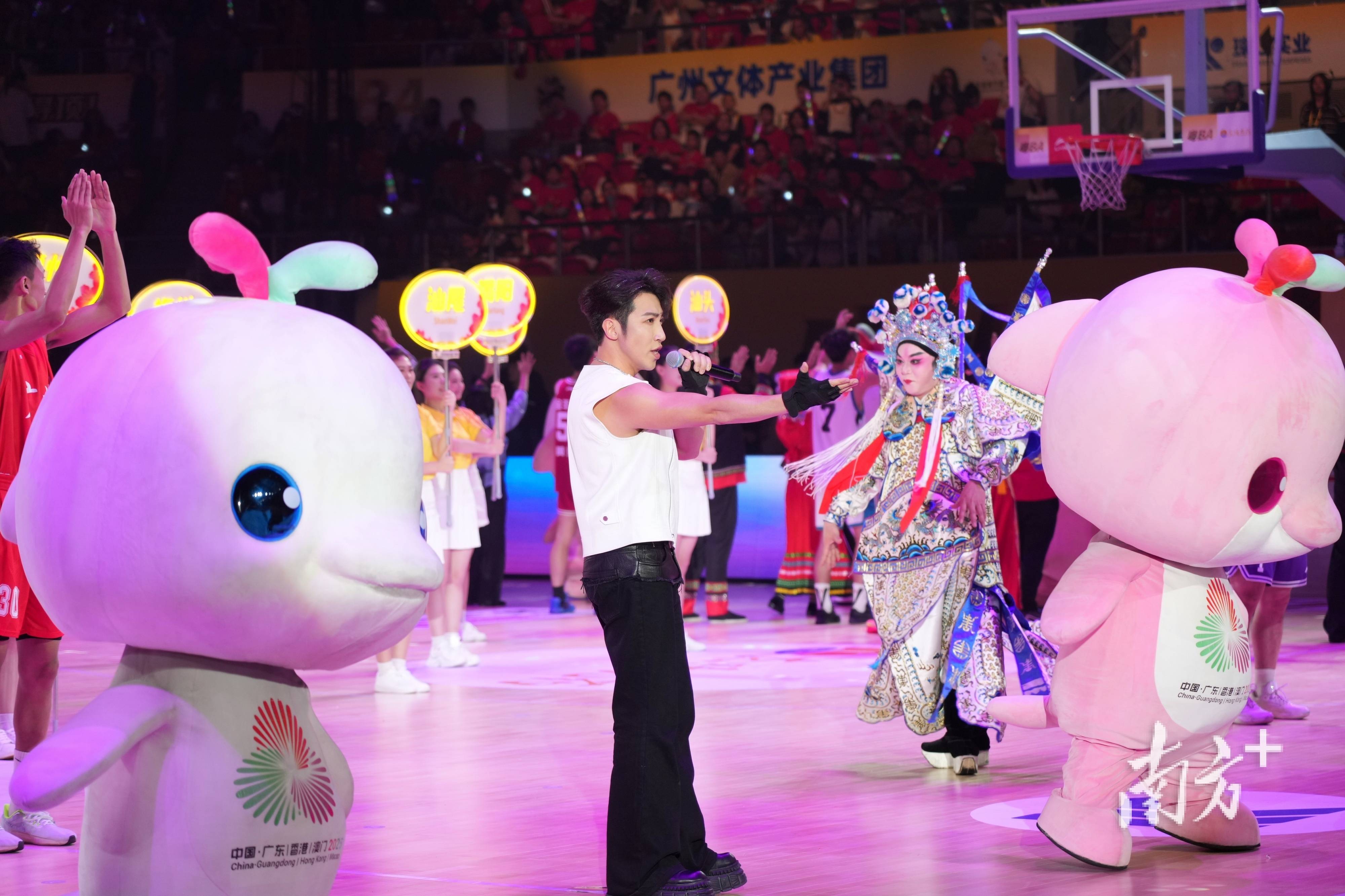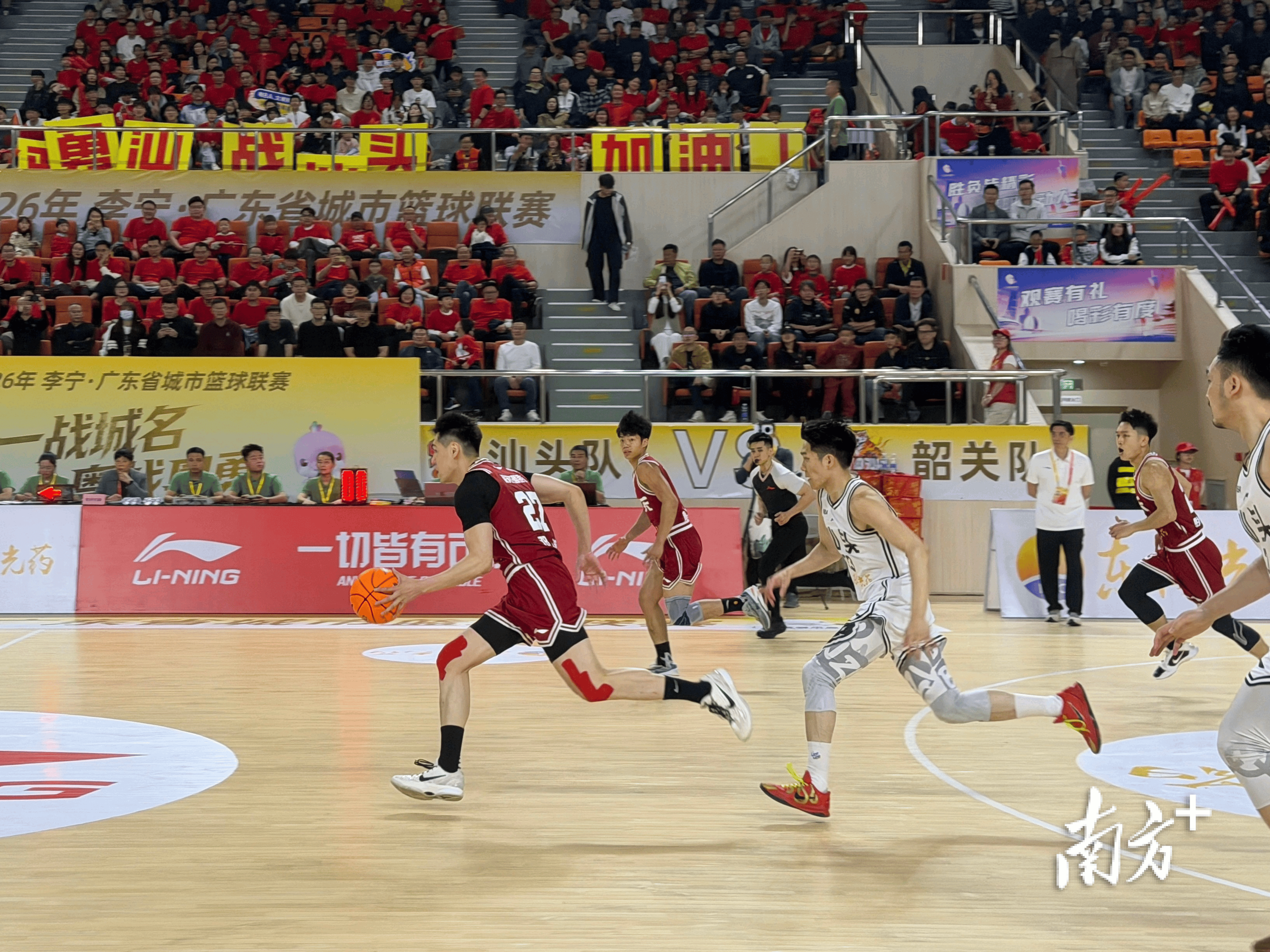 21日晚的粤BA揭幕战,广州天河体育中心体育馆涌入6000余名观众,全场高唱国歌的场面震撼人心。在潮州,多处户外LED大屏为赛事亮灯,“一战城名,粤战粤勇”的标语点亮街头;在湛江,醒狮助阵、调顺网龙非遗展示轮番上演,现场2500多名球迷齐声高歌,把球场变成了一片欢乐的海洋;在汕头,近3000名观众挥舞彩旗、横幅、加油棒,呐喊声此起彼伏……从粤东到粤西,从珠三角到粤北,粤BA首轮全省多地同步开打,处处都是热火朝天的景象。